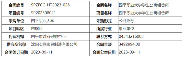 四平職業(yè)大學(xué)學(xué)生公寓組合床合同公示