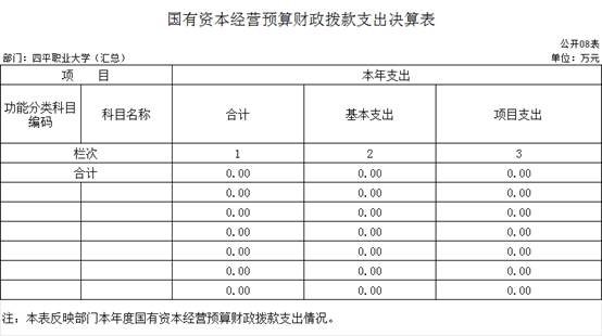 2022年度國有資本經營預算年初結轉和結余0萬元;本年收入0萬元;本年支出0萬元,年末結轉和結余0萬元。支出具體情況如下: