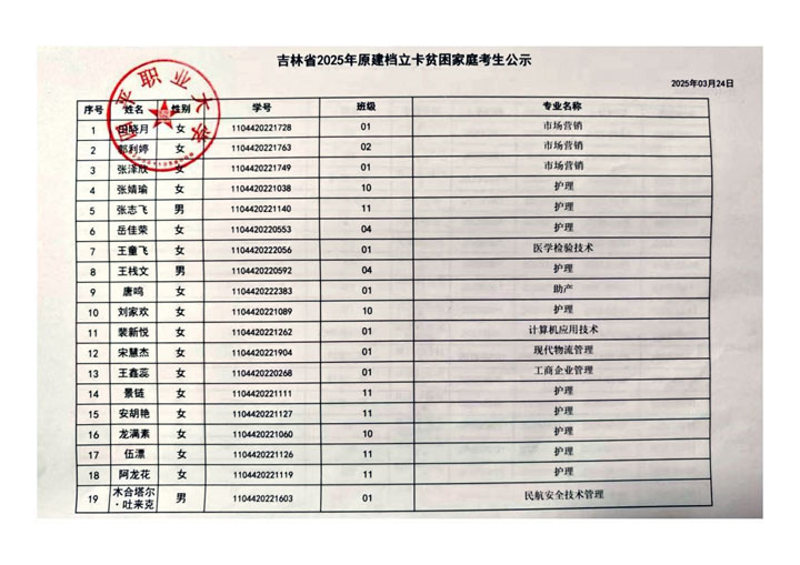 根據(jù)吉林省考試院2025專(zhuān)升本考試報(bào)名要求,我校現(xiàn)將2025年專(zhuān)升本考試報(bào)名中的建檔立卡考生公示如下: