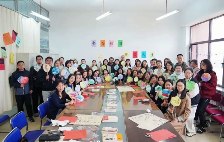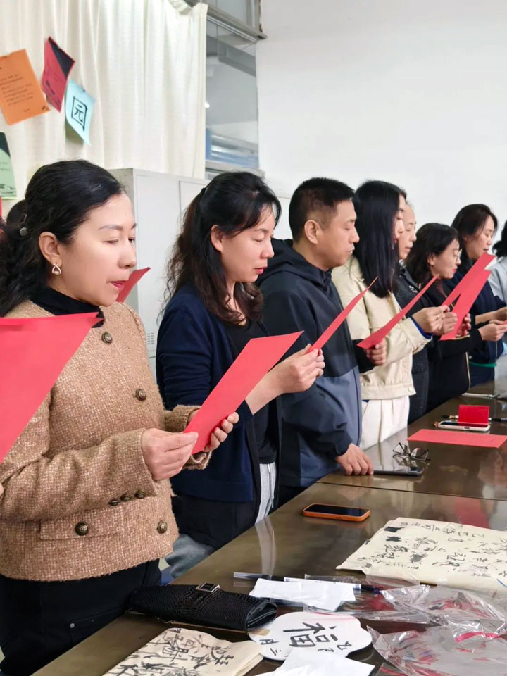 活動(dòng)結(jié)束后,閱覽室內(nèi)漆香未散,琴韻猶存,教職工們以“書香校園·悅讀人生”為背景,手持漆扇合影留念,將這份獨(dú)特的四月記憶轉(zhuǎn)化為教育生涯中的文化養(yǎng)分。