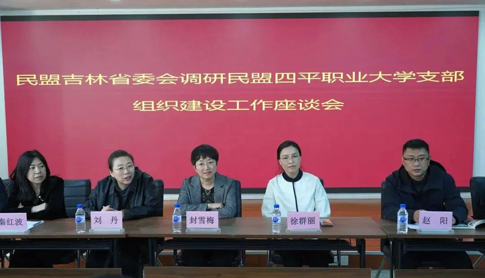 5月22日,民盟吉林省委會專職副主委封雪梅一行到民盟四平職業大學支部開展基層組織建設調研。市政協副主席、民盟四平市委會主委徐群麗、民盟四平市委會專職副主委秦紅波、民盟四平市委會組織部部長姬晴等陪同調研。校長劉少昆、黨委副書記戴路、副校長曲園、黨委宣傳(統戰)部副部長宮鳳娟、民盟四平職業大學支部主委艾亮及部分盟員參加調研座談。座談會由秦紅波主持。