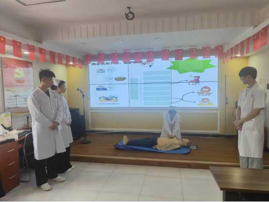 活動(dòng)中,劉洋開展“健康大講堂”,深入淺出講解日常保健知識(shí),引導(dǎo)居民樹立正確健康觀念。學(xué)生志愿者團(tuán)隊(duì)利用人體模型現(xiàn)場(chǎng)演示并細(xì)致講解標(biāo)準(zhǔn)化心肺復(fù)蘇術(shù)(CPR),幫助居民掌握急救要領(lǐng)。醫(yī)藥學(xué)院副院長(zhǎng)朱明霞、王麗艷及黨員教師劉英等人現(xiàn)場(chǎng)為居民免費(fèi)測(cè)量血壓、進(jìn)行口腔檢查,針對(duì)異常指標(biāo)及老年人常見慢性病問題提供個(gè)性化健康建議和科學(xué)管理方案,讓居民在家門口享受專業(yè)醫(yī)療服務(wù),有效提升了居民的健康素養(yǎng)與急救能力。