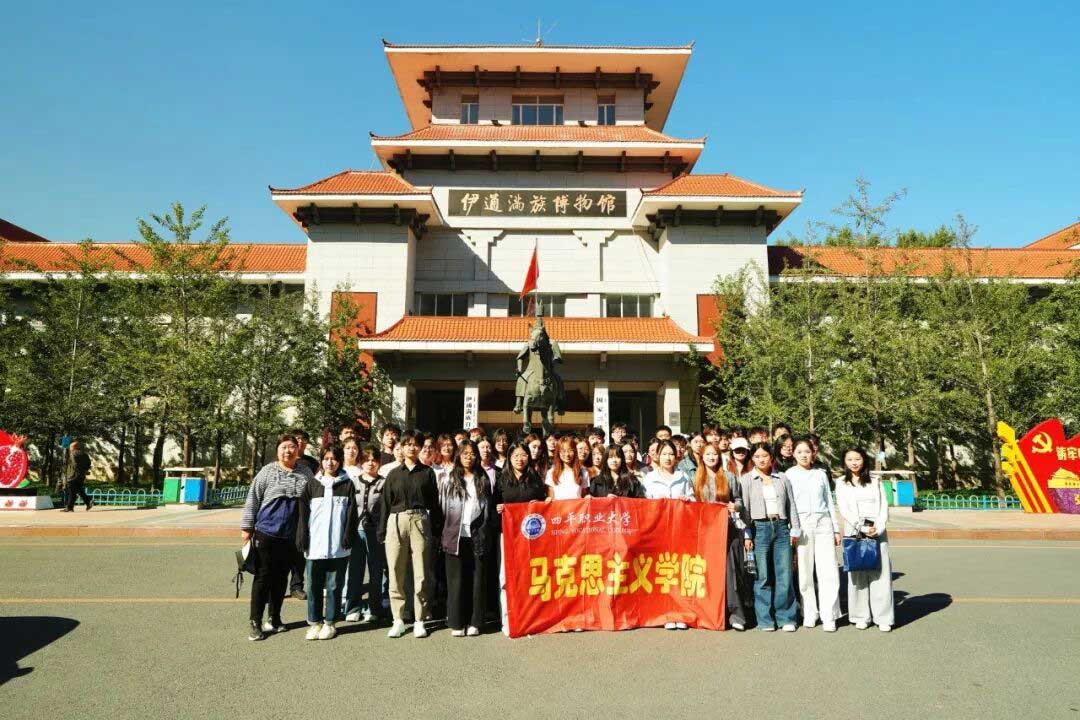 師生們前往伊溪濕地,實地學習伊通河治理經驗。學生們深刻認識到“綠水青山就是金山銀山”理念在基層的生動實踐,也增強了生態環境保護的責任意識。 隨后,師生們走進伊通滿族博物館,開啟民族文化探尋之旅。在講解員的引導下,學生們參觀了滿族歷史文化、民俗風情、生產生活等主題展區。此次參觀不僅豐富了民族文化知識,更深刻體會到“各民族像石榴籽一樣緊緊抱在一起”的重要意義,進一步堅定了文化自信與民族認同感。