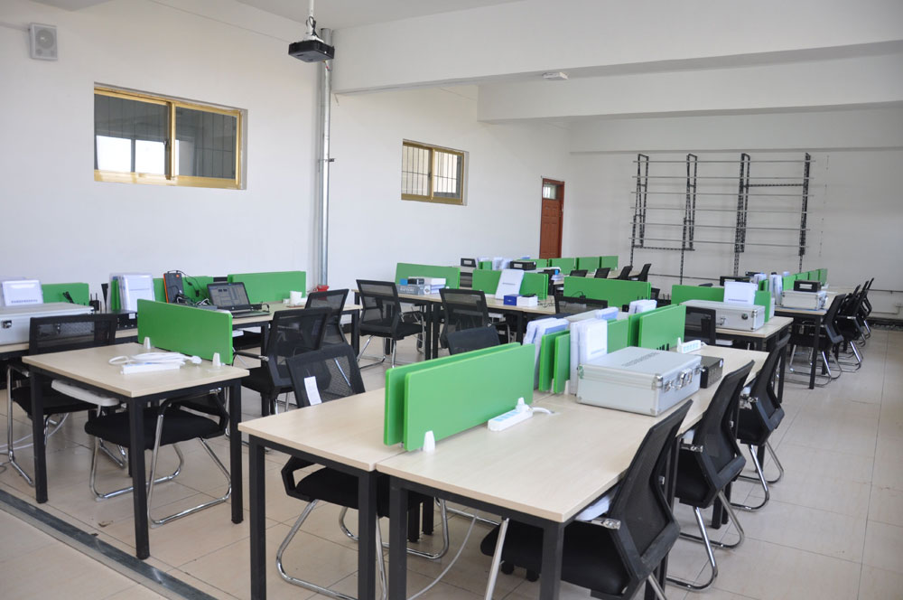 目前學校正在建設移動通信、通信網絡工程和物聯網工程三個中心,目前有1200萬的實驗設備陸續到校,并進行安裝調試,每個實訓中心占地面積約150