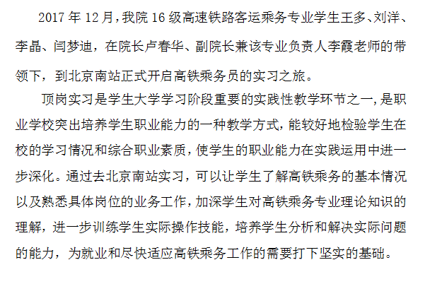 我院16級高速鐵路客運乘務專業學生到北京南站實習