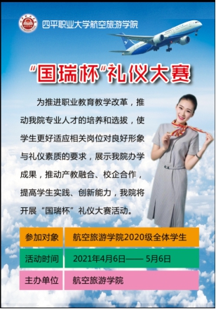 為推進職業(yè)教育教學改革,推動我院專業(yè)人才的培養(yǎng)和選拔,使學生更好地適應(yīng)相關(guān)崗位對良好形象與禮儀素質(zhì)的要求,展示我院辦學成果,推動產(chǎn)教融合、校企合作,提高學生實踐、創(chuàng)新能力,我院“國瑞杯”禮儀大賽于2021年4月6日正式拉開帷幕。