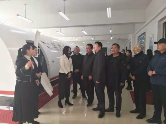 調研組先后參觀我院高鐵模擬艙、航空模擬艙,聽取了學院院長對于兩個模擬艙的介紹,并針對學生實訓進行了實地查看。