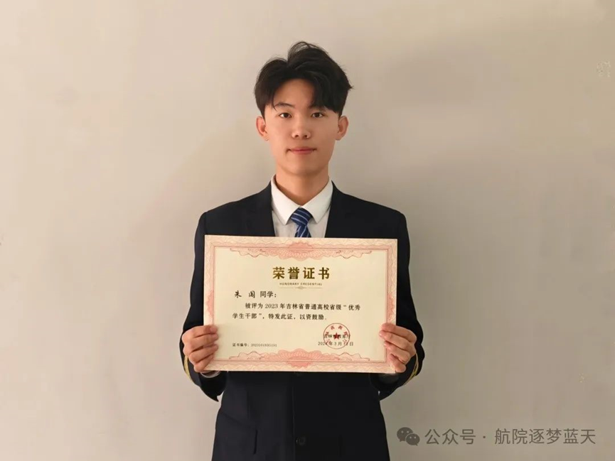 航空旅游學(xué)院朱闖同學(xué)榮獲2023年吉林省普通高校省級(jí)“優(yōu)秀學(xué)生干部”。