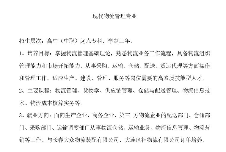 現(xiàn)代物流管理專業(yè)