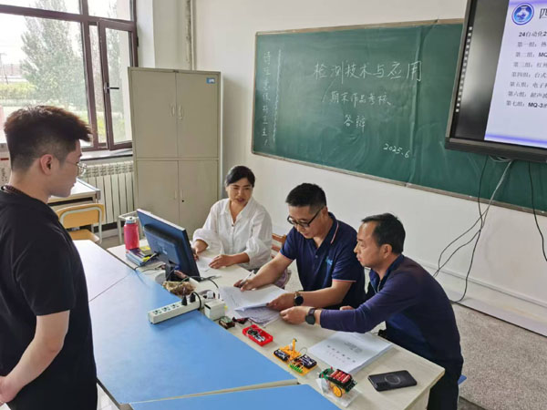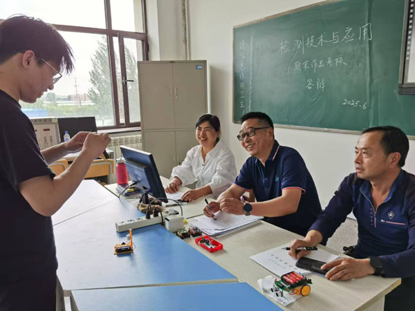 6月16日,為推進(jìn)教育改革創(chuàng)新,展示教育成果,由我院專業(yè)骨干教師戴英杰授課的《檢測技術(shù)與應(yīng)用》,在D219實(shí)訓(xùn)室開展了現(xiàn)場考核答辯及作品展示。學(xué)院電氣自動(dòng)化專業(yè)負(fù)責(zé)人劉長國、專業(yè)教師代表張旭及戴英杰老師為評委,2024級電氣自動(dòng)專業(yè)班全體同學(xué)到現(xiàn)場進(jìn)行答辯觀摩。《檢測技術(shù)及應(yīng)用》課程是面向裝備制造領(lǐng)域的專業(yè)課程,主要培養(yǎng)掌握精密測量技術(shù)、質(zhì)量檢測方法及自動(dòng)控制系統(tǒng)維護(hù)能力的高素質(zhì)技術(shù)技能人才。課程緊密圍繞自動(dòng)控制技術(shù)發(fā)展背景,側(cè)重實(shí)踐技能培養(yǎng),適用于電氣自動(dòng)化技術(shù)專業(yè)教學(xué)及相關(guān)工程技術(shù)領(lǐng)域。