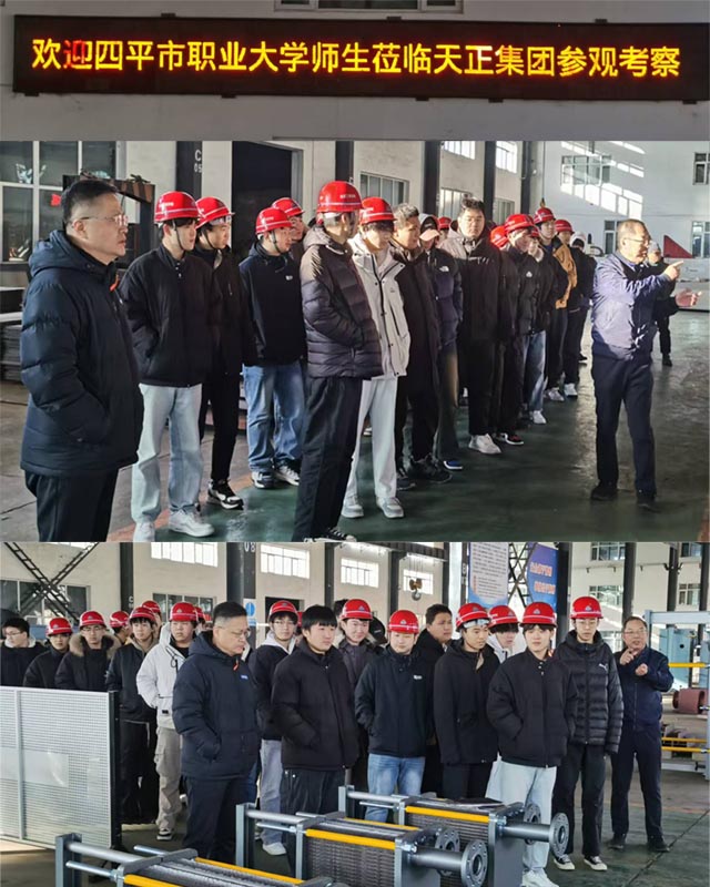 天正集團秉承用戶至上,合作共贏的理念,為用戶提供快速的服務,竭力打造綠色生活,為社會奉獻清潔能源。四平天正換熱設備有限公司一直致力于對換熱設備、管道補償設備等系列產品的技術創新和品質提升。企業緊緊把握時代脈搏,依托市級企業技術中心,加強與國內外知名科研機構的戰略合作,積極構建“產、學、研”一體化科技創新體系。 12月2日,智能制造工程學院院長趙宇、教學副院長陳乃峰、院辦劉天宇老師帶領2024級電氣自動專業班同學赴四平天正換熱設備有限公司開展校企交流與合作探討,受到公司負責人熱情接待。
