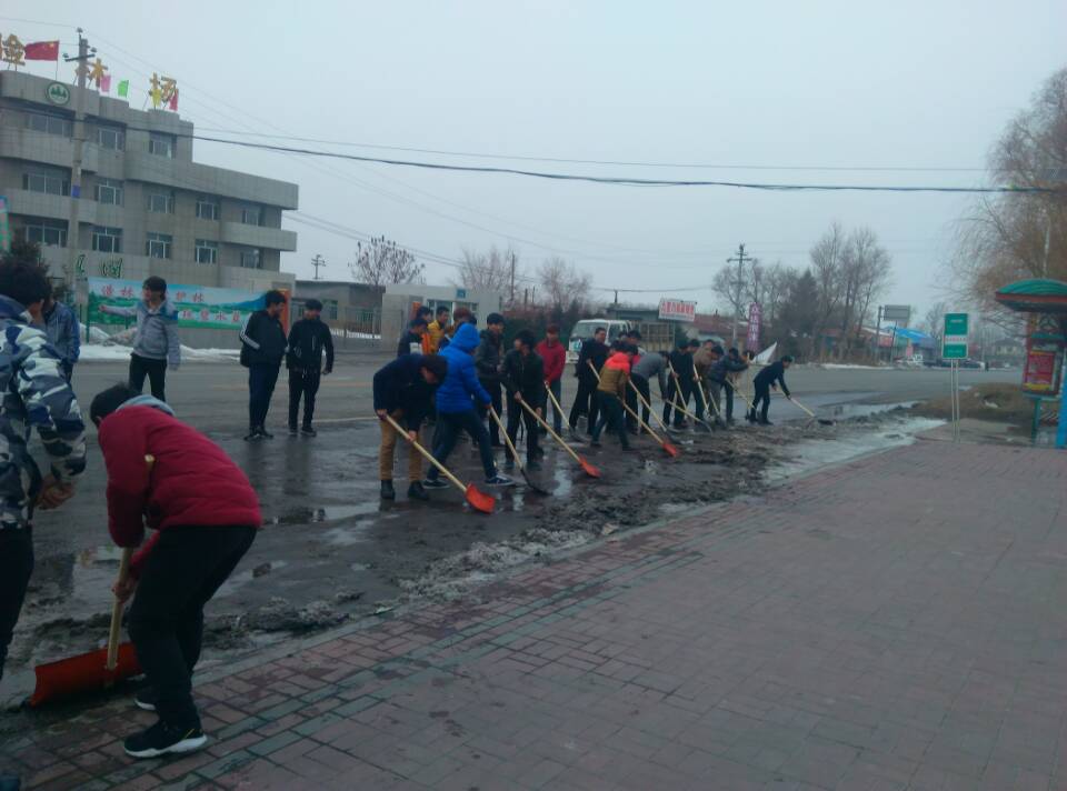 校團委全體學生干部義務清掃校門口公交站點積雪